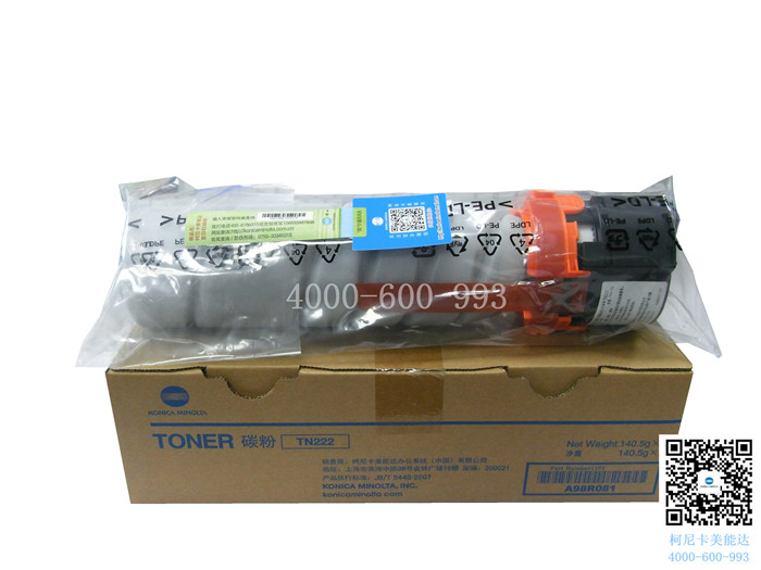 柯尼卡美能達復印機bizhub306原裝碳粉盒有兩種容量,分別是大容量和小容量,大容量的型號是TN222(H),小容量的型號是TN222,本站提供的是柯尼卡美能達bizhub306復印機小容量碳粉的相關信息。